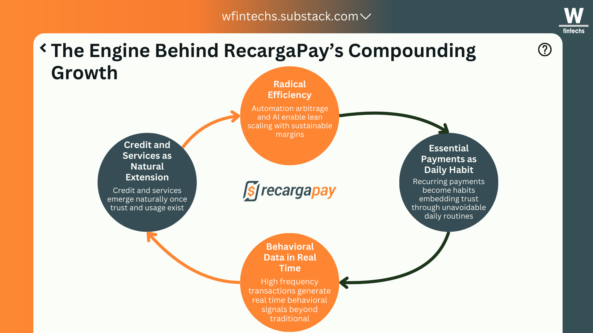 É nesse ponto que a tese da RecargaPay se afasta de uma narrativa tradicional de neobank e se aproxima de algo mais estrutural. Ao invés de começar oferecendo crédito e depois tentar gerar uso, a empresa construiu uso primeiro, em cima de necessidades inevitáveis, e deixou que o resto emergisse com o tempo. O crédito aparece como consequência lógica de uma relação já estabelecida. Essa ordem importa muito em mercados onde confiança institucional é limitada e onde o histórico financeiro formal não representa a realidade da maioria da população.
