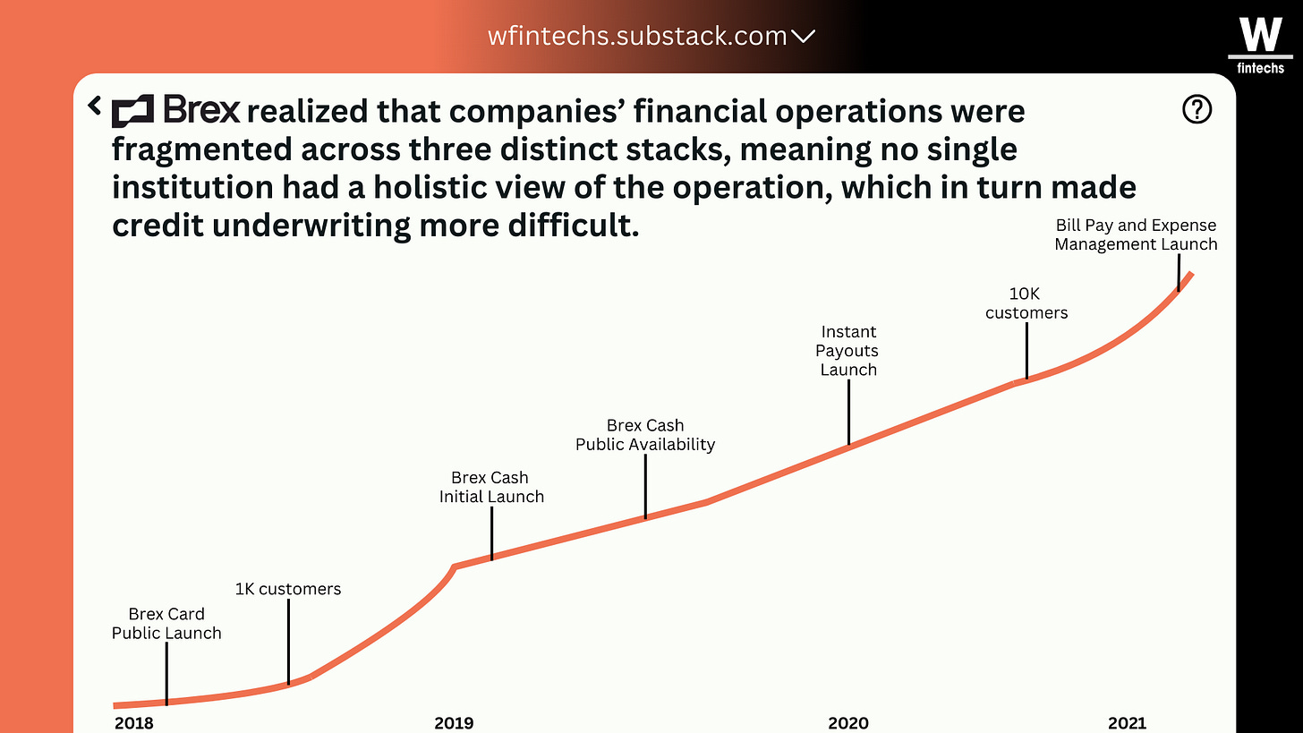 By using the card as the entry point, Brex positioned itself in a privileged spot within this fragmentation, observing spending flows, behaviors, and operations that traditional banks simply could not see. By treating the corporate card as the starting point, the company built a foundation that explains not only its initial adoption, but also why that simple product would become the first building block of a larger ambition, which would later expand into accounts, financial management, and an integrated platform.